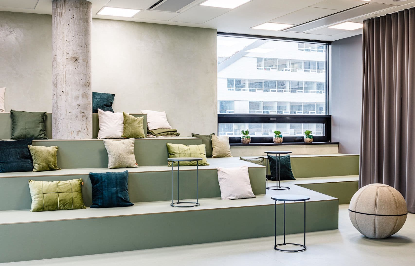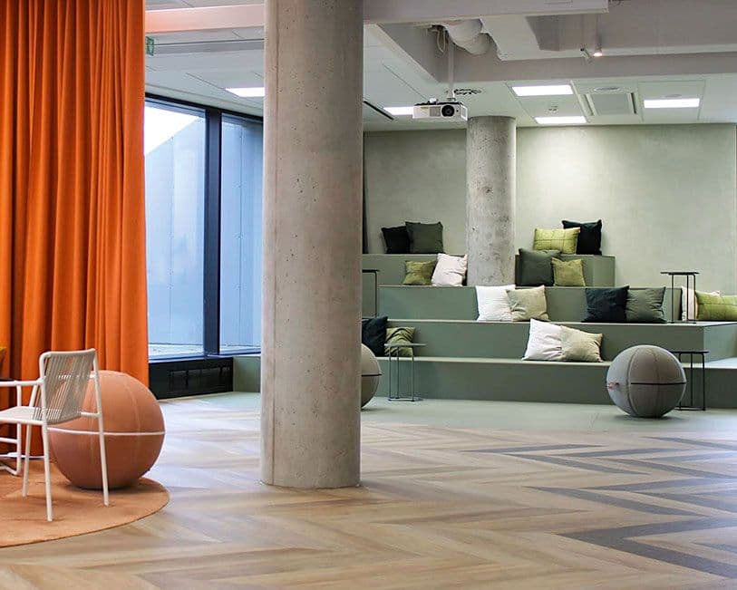 Furniture Linoleum for furniture and desktops is a natural surface material with a matt finish. It provides a cushioned finishing layer to desks, chairs, stools, cabinets, doors, and displays. Made of linseed oil, it is bio-based with natural raw materials.